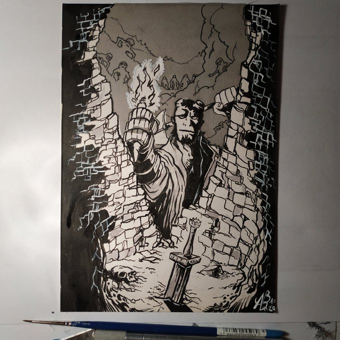 #inktober day 24, dig, my homage to @artofmmignola Hellboy, have a lot of fun with it. 😁 @inktober #inktober2020dig #inktoberday24 #hellboy #comics #inktober #inktober2020day24 #IPEVO #inktoberday24dig #inktoberdig #darkhorse #darkhorsecomics