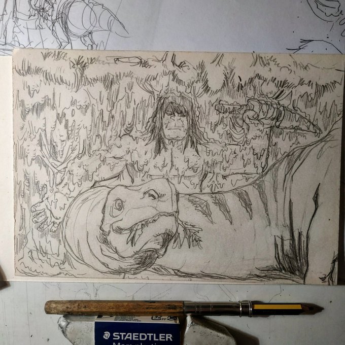Pencils for d. 25 #inktober, but the custom prompt #Primal_Inktober. It's a reference to Rambo, do you remember? Used the dinosaurs, lava and slime tutorials from @EtheringtonBros super books #howtoTHINKwhenyouDRAW. Cool stuff 😁 #inktober2020 #inktober2020day25 #inktoberday25