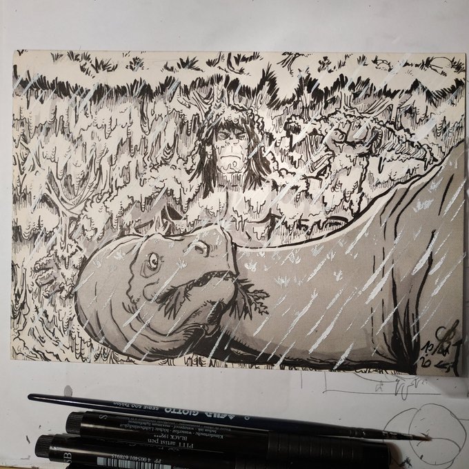 My #Primal_Inktober hunter, @adultswim @inktober @mrjakeparker - hiding in the mud, from Rambo 2 to Predator I always loved this bizarre concept 😁 #inktober2020 #inktoberday25hunter #inktober #fantasyart #primal #inktober2020 #inktober2020day25 #inktober25 #inktoberday25 #IPEVO