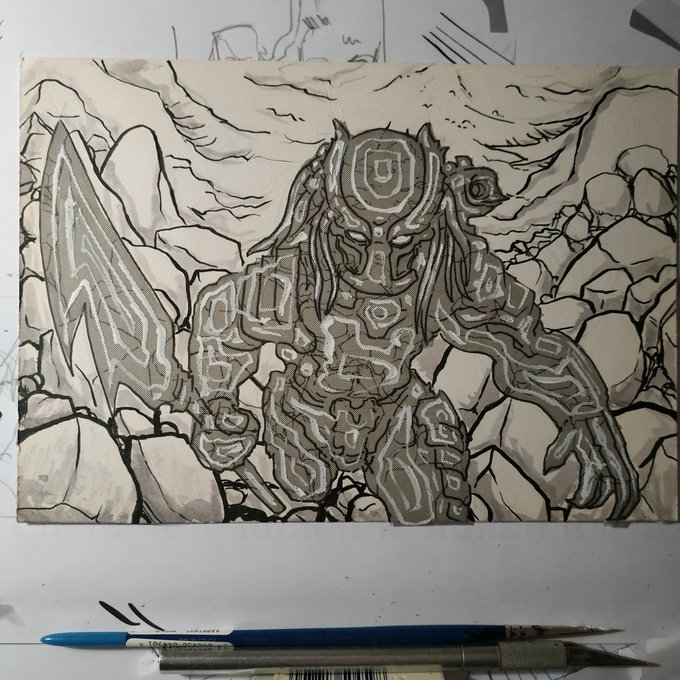 Here's my #predator hiding for #inktober day 26 @inktober @mrjakeparker. I think the lines for the light efx works well, pretty happy with it. #inktober2020 #inktober2020day26 #inktober2020day26hide #inktoberday26 #inktoberday26hide #predatormovie #Predator #scifi #scifiart
