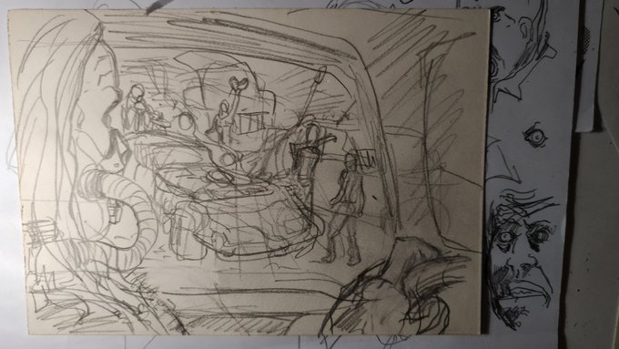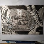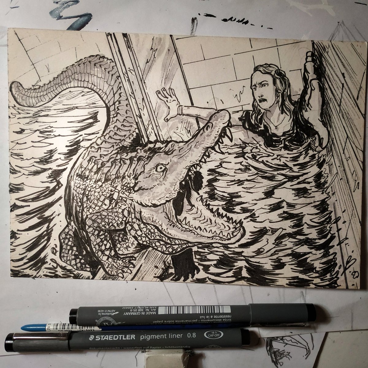 #inktober crawl work in progress, changed the prospective and studied a bit alligators.. Watching horror movies with my kids, can't complain, will finish tomorrow 😉👍🏼 #inktober2020 #inktober2020crawl #inktoberday31crawl #inktoberday31