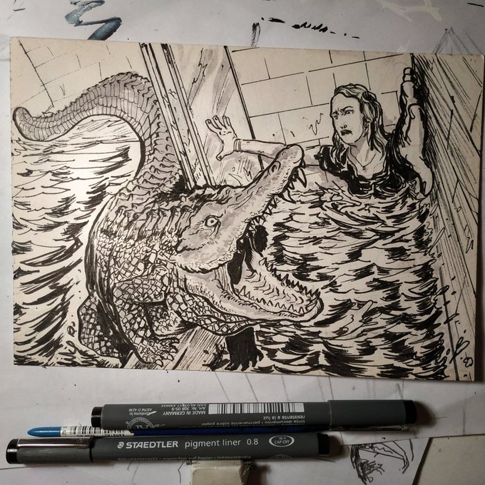 Tomorrow it's last #inktober, crawl.. I'm citing crawl the movie, if I don't change my mind 😏 #inktober2020 #inktober2020crawl #inktoberday31 #crawl #crawlmovie #aligator #crocodiles #crocodile🐊 @Crawlmovie2019 @TheCrawlMovie @CrawlMovie_JP