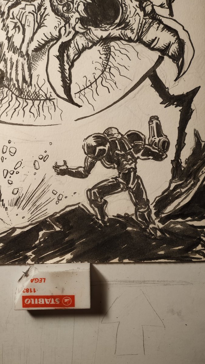 My first Inktober for this year, suit. Fixes + zipatone this evening... I think. Not so much time. #sketch #Inktober #inktober2021 #inktober2021day2 #Metroid #MetroidDread #Metroitober