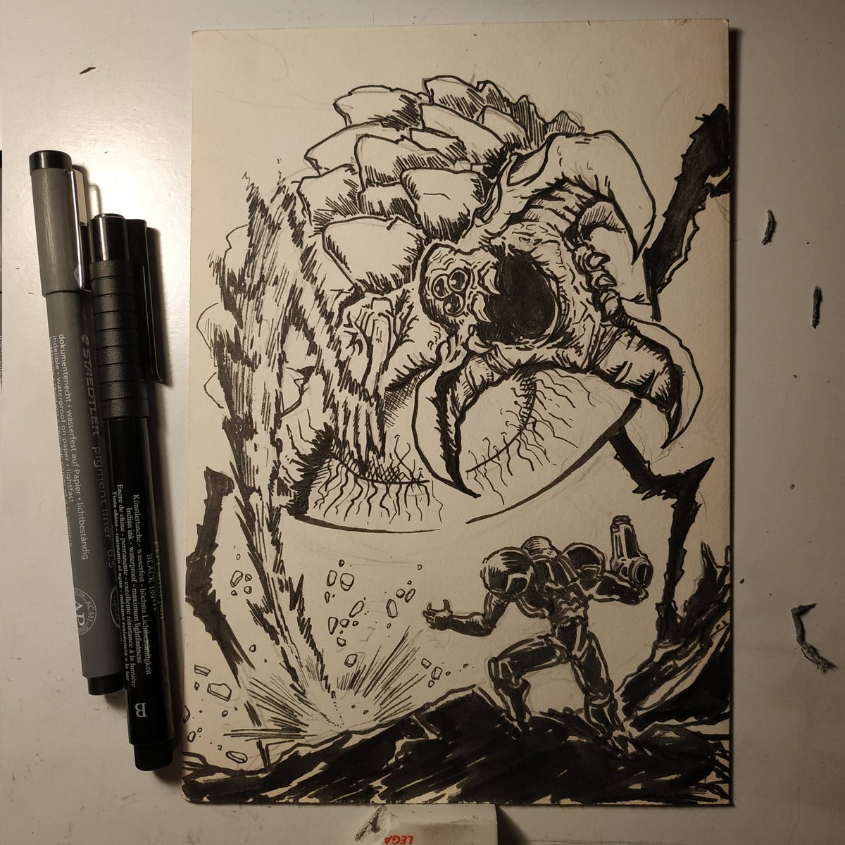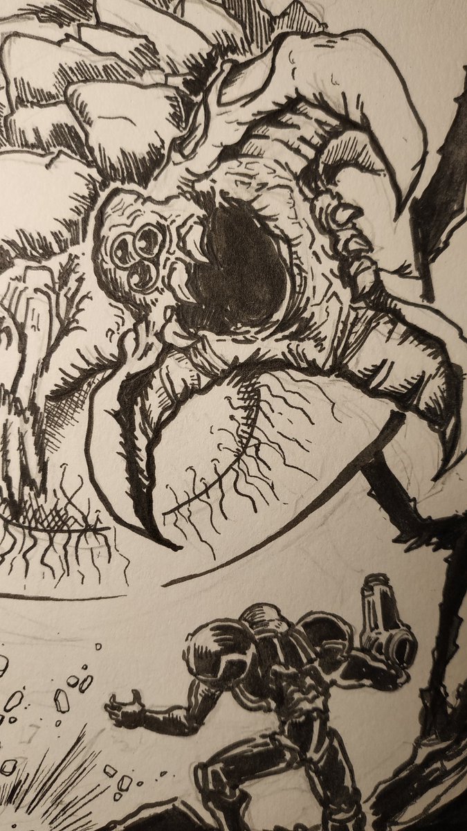 Tried to go live on Instagram but the system was against me😩 Whatever, here are my version with the #zipatone, enjoy fighting #samus! #Inktober #inktober2021 #inktobersuit #metroid #metroiddread #metroidfanart #scifidrawing #nintendoswitch #zipatone #screentone #screentones