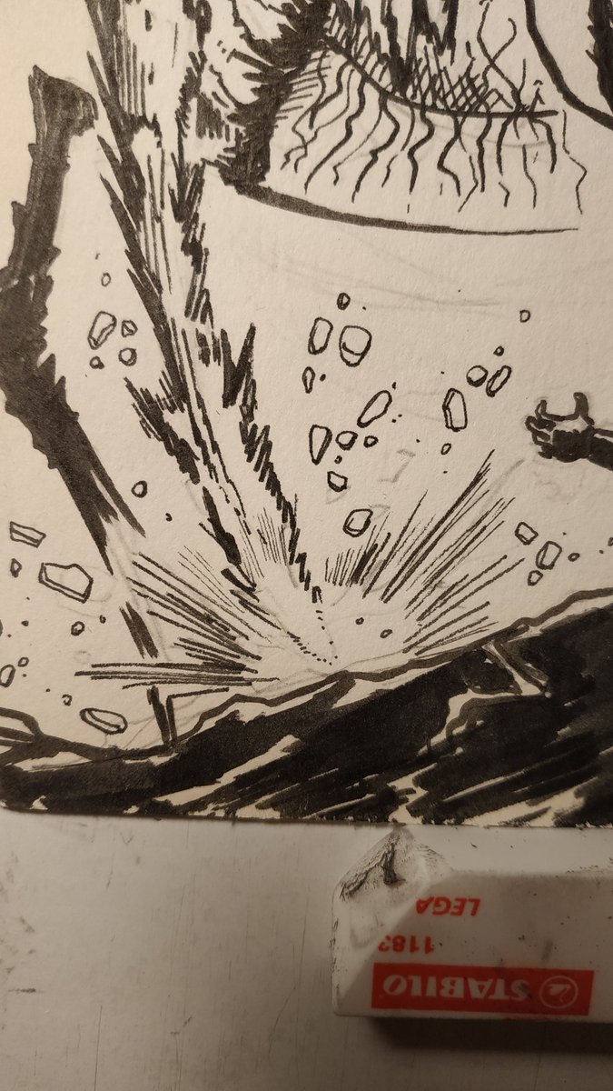 Finally my #Spirit piece w. inks zipatone & greys shades 😉👍🏼not completely happy with the white strokes but love the exploding door (took a little look to @EtheringtonBros #howtoTHINKwhenyouDRAW book 3 p. 170😉 for the wood) #Inktober #inktober2021 #inktober2021day6 #willeisner