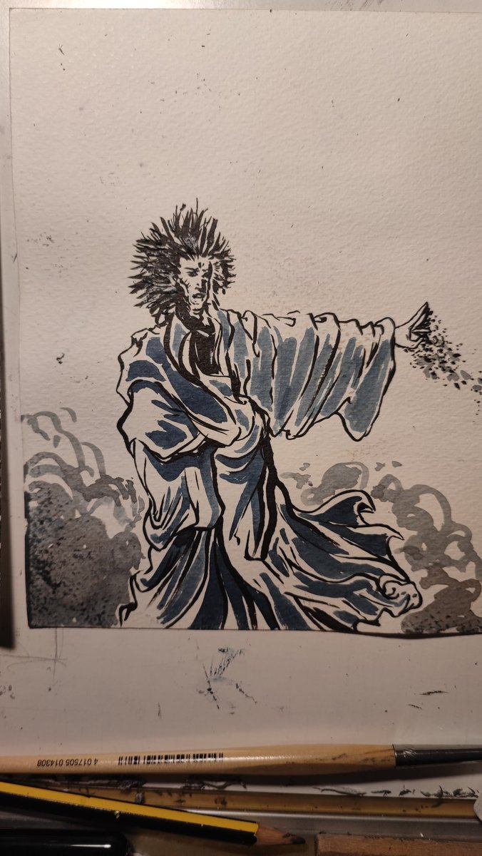 2° #inktober done but this time a #keyfabetober I was uninspired😅 so here's my #sandman but the result is… super bad 😭 took the opportunity to try my #pentelbrushpen played with it & tried another one, just for fun. Still bad btw. Ehi but this is part of the game, isn't it?😅