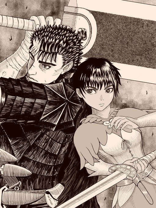 ベルセルクの復活したキャスカとガッツが再び共闘するところを想像して描きました。 三浦健太郎さんの絵っぽくなるようにがんばりました。 新たな体制での連載、今後もとても楽しみです。 #ベルセルク #Berserk #イラスト #イラスト好きさんと繋がりたい #絵描きさんと繋がりたい #illustraion