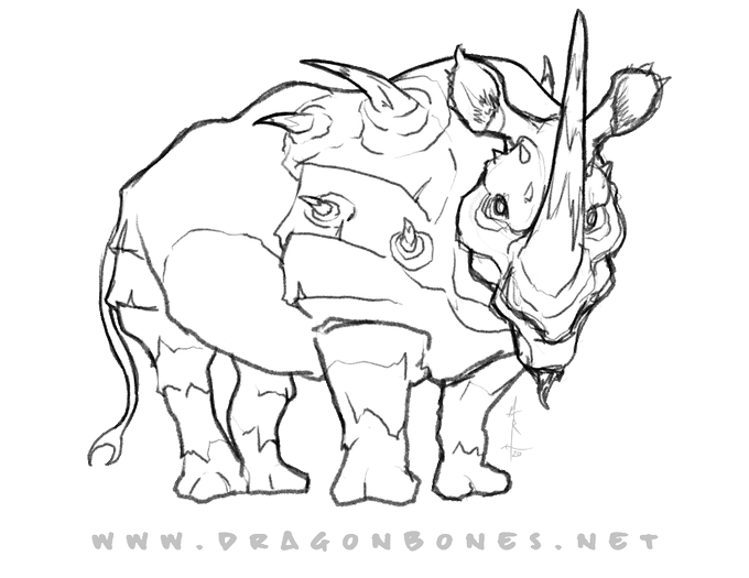 Last #sketch for tonight fell together pretty quickly. #Day14 of #Smaugust had a theme of #Rhinoceros - Think I might add more 'horns' along the mid torso... #Smaugust2020