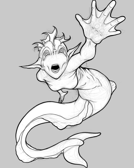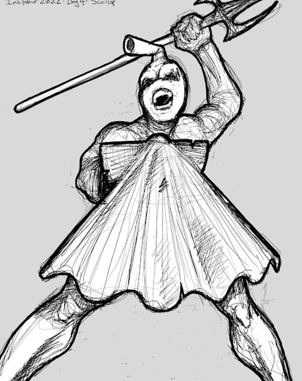 Day 4: Scallop Probably my least favorite of them so far. Still, I give myself points for doing something weird. Remember the Snorks cartoon show? Well, I thought: "What if they evolved into a warrior species?" The results are... questionable. #day4 #inktober2022 #scallop…