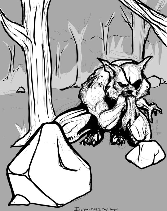 Loooots of catch up! #day3 for #inktober2022 is #bat. I pictured some fantasy villains facing off against the teenager who just popped into their realm. Kid’s using what they have on hand to defend themselves, and proving to be proficient!