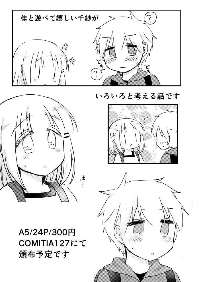 コミティア127新刊サンプルです 小学生の千紗が佳と遊ぶことについていろいろと考える話です。 A5/24P/300円の予定です。よろしくお願いします~!