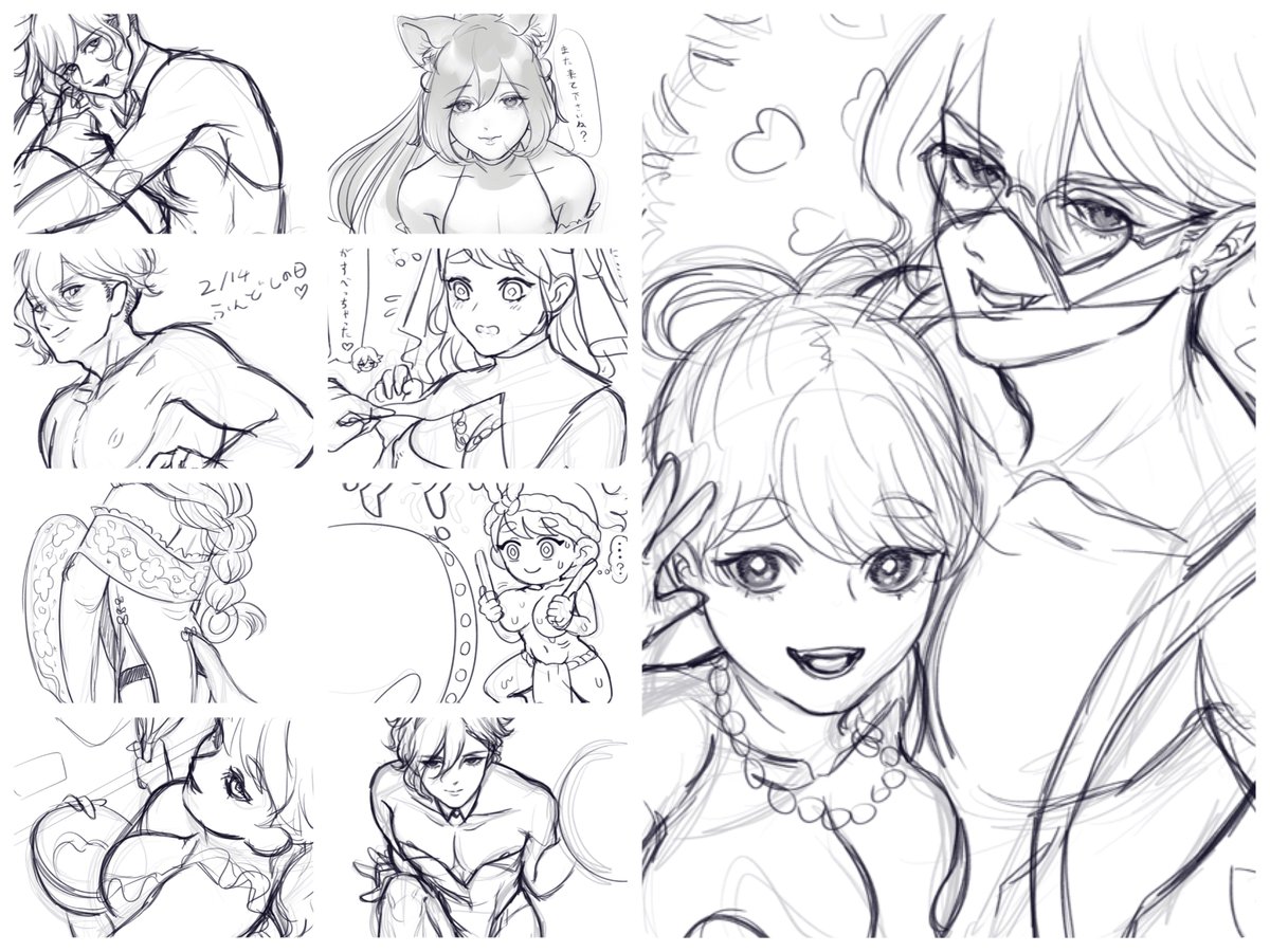 #今月描いた絵を晒そう 今月はこんな感じ🐧 メイデルさん率高〜い‼️ 前からある絵に文字入れしただけとか表情差分だけみたいなやつが多いのはあまり絵に時間かけられなかったからですね…… 線だけとかラフだけのやつもたくさんある😌