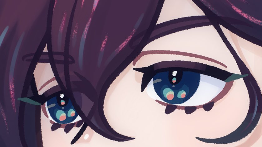 #みなさんが絵を描くにあたってここは命って言うのを教えてください 脂肪のつき具合によって肉体の柔らかさの表現を変えたり…… 服や髪の質感によって塗りをマットにしたり光らせたりする…… あとまつ毛(上)は目立たせたいので目尻に補色入れて強調したりするね🐧