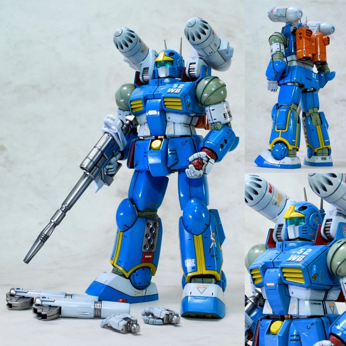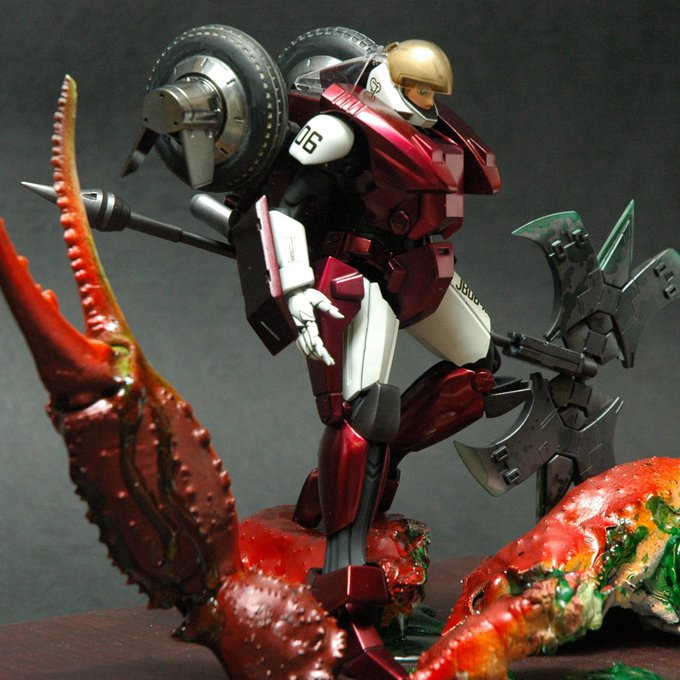 床を踏み抜くモンスターの勇姿を再現したくて、フル可動仕様で作りました。2号機を作る方が多いので1号機なら一緒に飾れるかな、と思ってマーキングしました。宜しくお願い致します。 #マクロスモデラーズ製作