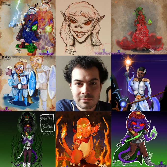 Hey it's #PortfolioDay ! I' m Shampi, a french D&D artist with a passion for mythology, nature and worldbuiding. I especially enjoy chararacter and creature design. 🎨My Commissions are actually open! - 💳All links/info: mrshampi-art.carrd.co 💚My Ko-Fi: ko-fi.com/mrshampi