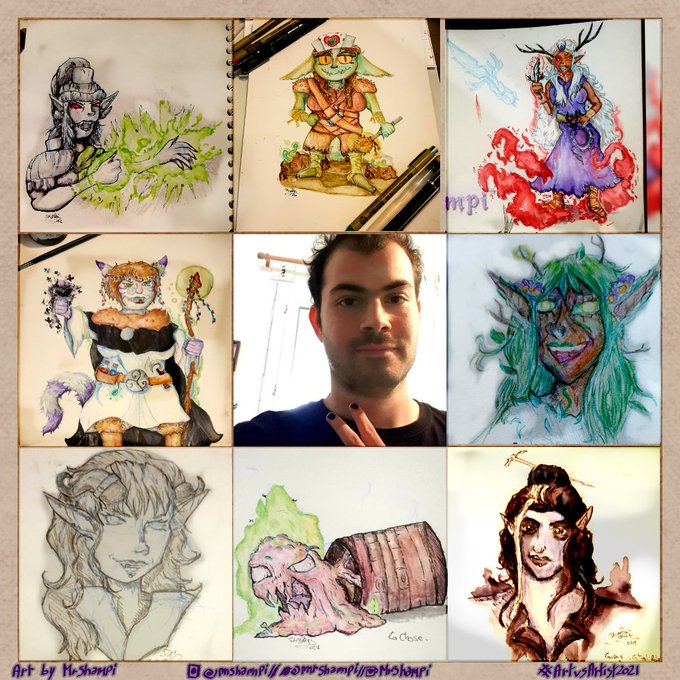 Hey #PortfolioDay is Live! Here's a bit my myself: I'm Shampi, 🇫🇷 🌈♾, D&D Traditional and Digital artist! Passionate of Mythology, folklore, and Nature! - Character/Creatures/ Comic is my jam! - You can find me here: artstation.com/mrshampi My Ko-Fi: ko-fi.com/mrshampi