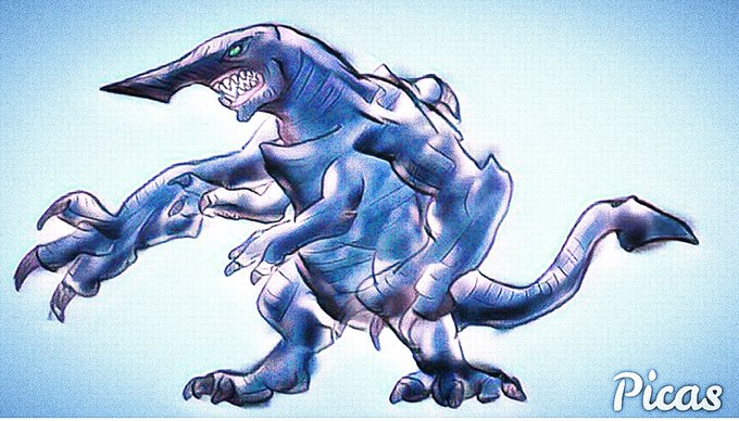 今日の絵。頭がノコギリザメだからノコギリギャオス #イラスト好きな人と繋がりたい #ギャオス #絵描きさんとつながりたい #絵描きさんフォロバ100 #イラスト好きさんと繋がりたい #ガメラ #落書き