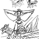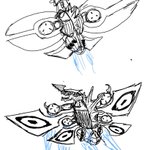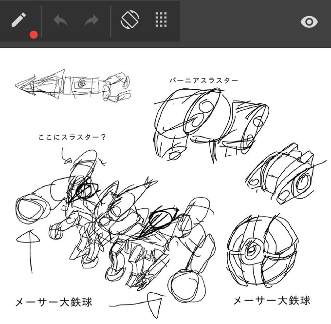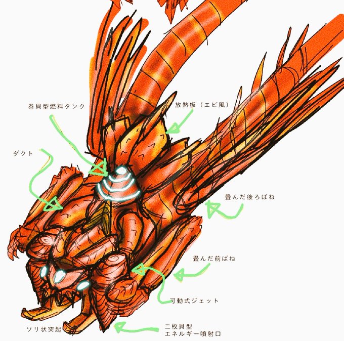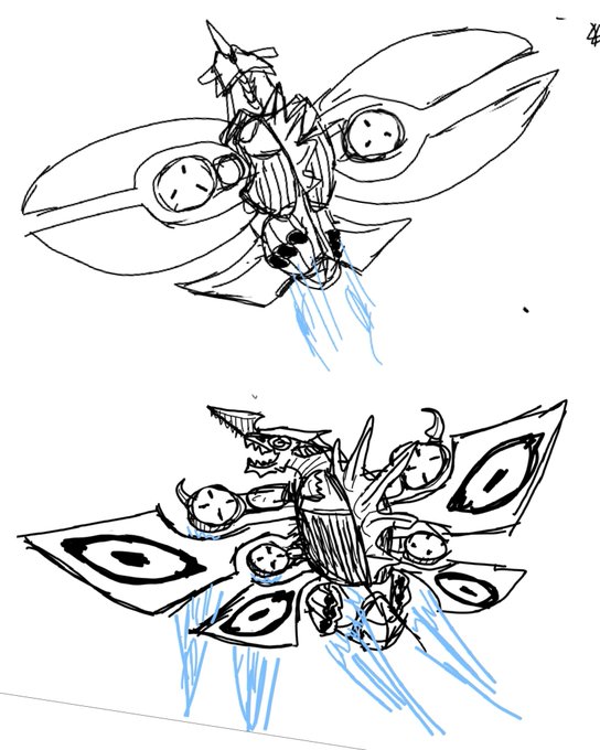 ゴジラFINAL WARSの空中戦艦エクレールの未使用謎装備、メーサー大鉄球を設定に組み込んでしまおう笑。顔もモゲラ+ガイガン風だからゴジラリスペクト感が増す。丁度いい #イラスト好きな人と繋がりたい #落書き #絵描きさんと繋がりたい #ロボ