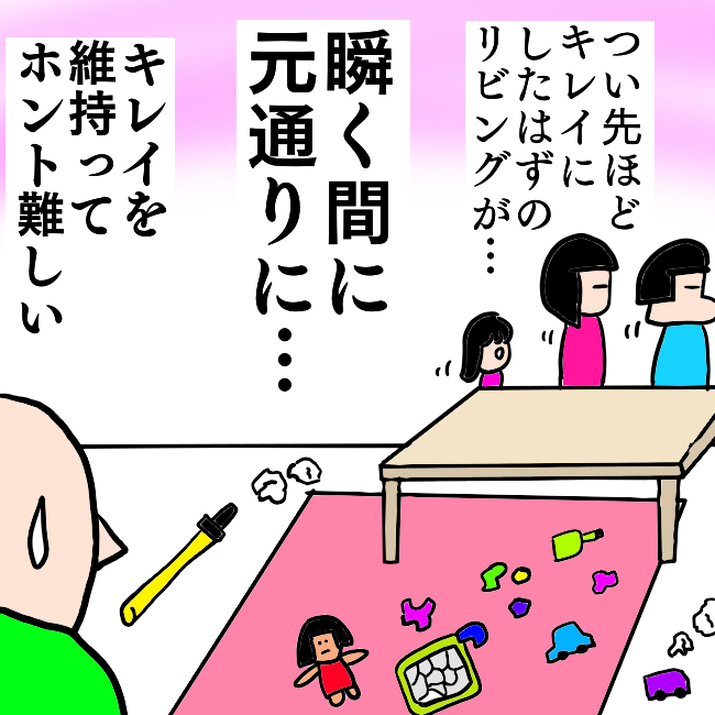 【再掲】 お掃除って、片付けるのはすごく大変なのに なんで散らかるのはこんなに簡単なんでしょうね。 #イラスト #漫画が読めるハッシュタグ #育児漫画 #絵日記 #子育て #エッセイ漫画 #育児日記 #育児あるある