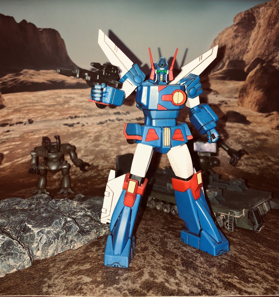 ダイソーのペーパークラフトのやつ楽しい(๑´ω`ノノ゙ぱちぱちぱち✧ なんとなくほら(*´ヮ`)MSトレーラー的な(笑) #褒めて褒めて #ガンプラ好きと繋がりたい Connect To #Gunplalovers