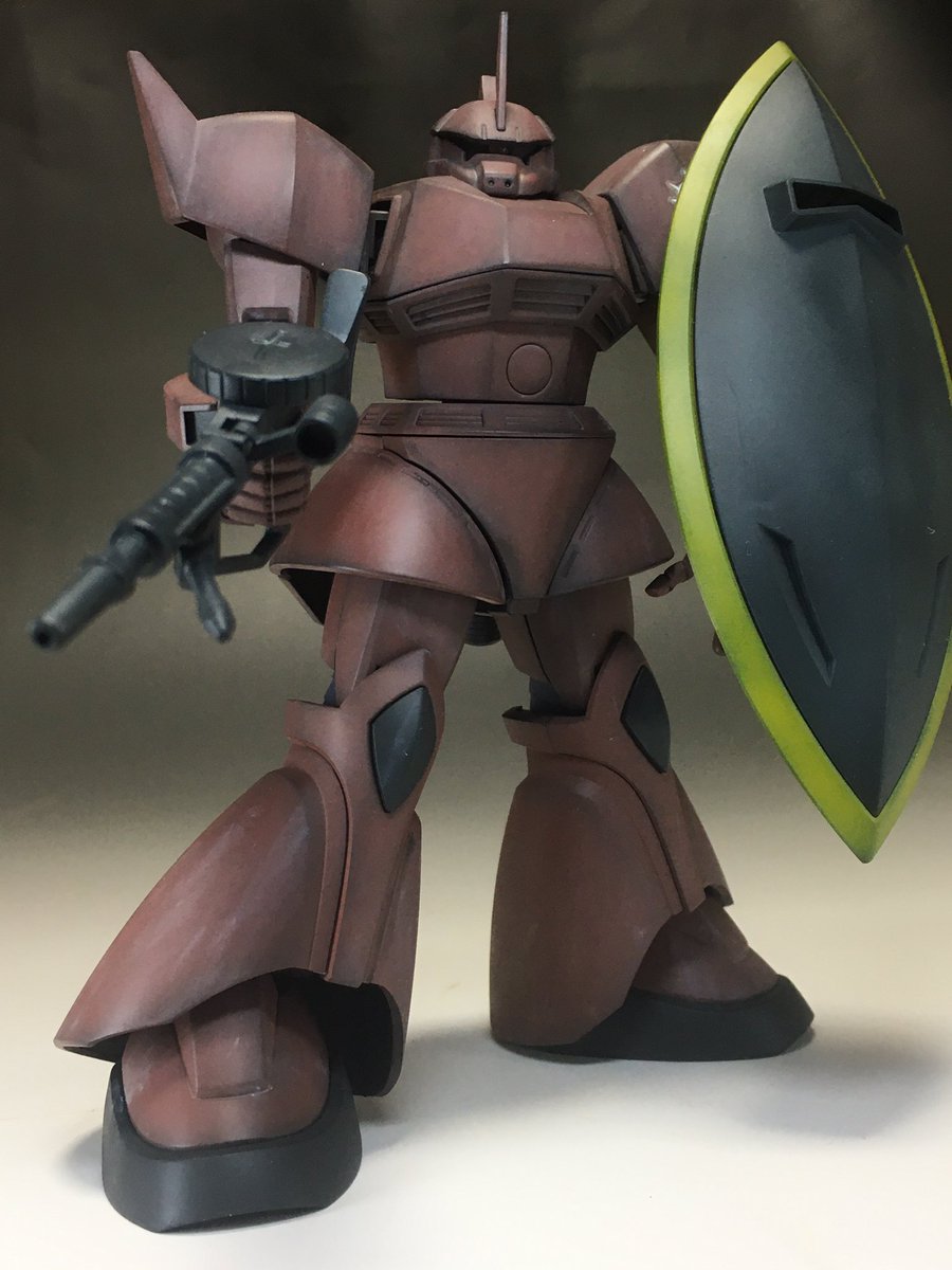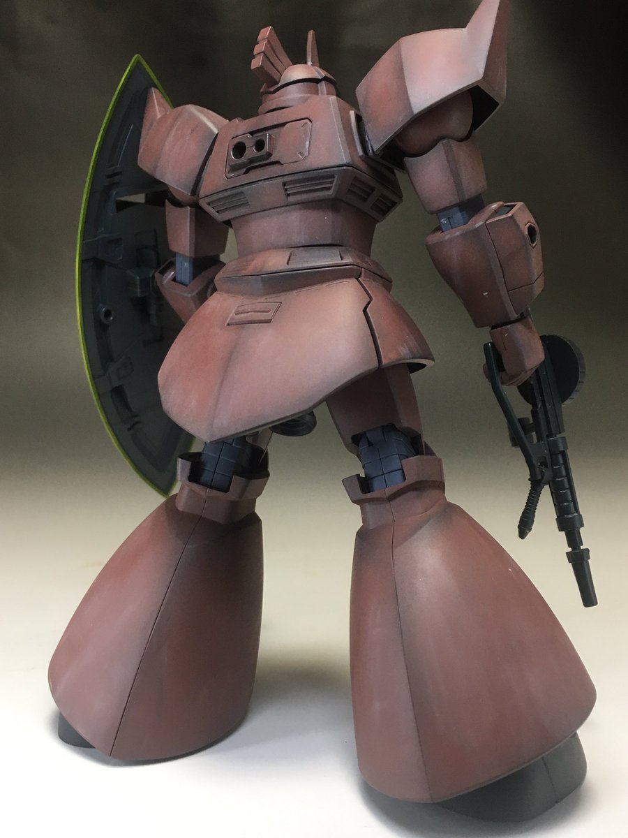 ゲルググ完成。 大戦末期のドイツ軍は戦車の塗装する暇もなく下地のオキサイトレッドのまま出撃したという資料を見て、もしもジオンも同じような状態だったらという妄想で製作しました。 #ガンプラの画像を貼るとRTされると聞いて #ガンプラ