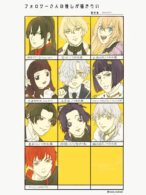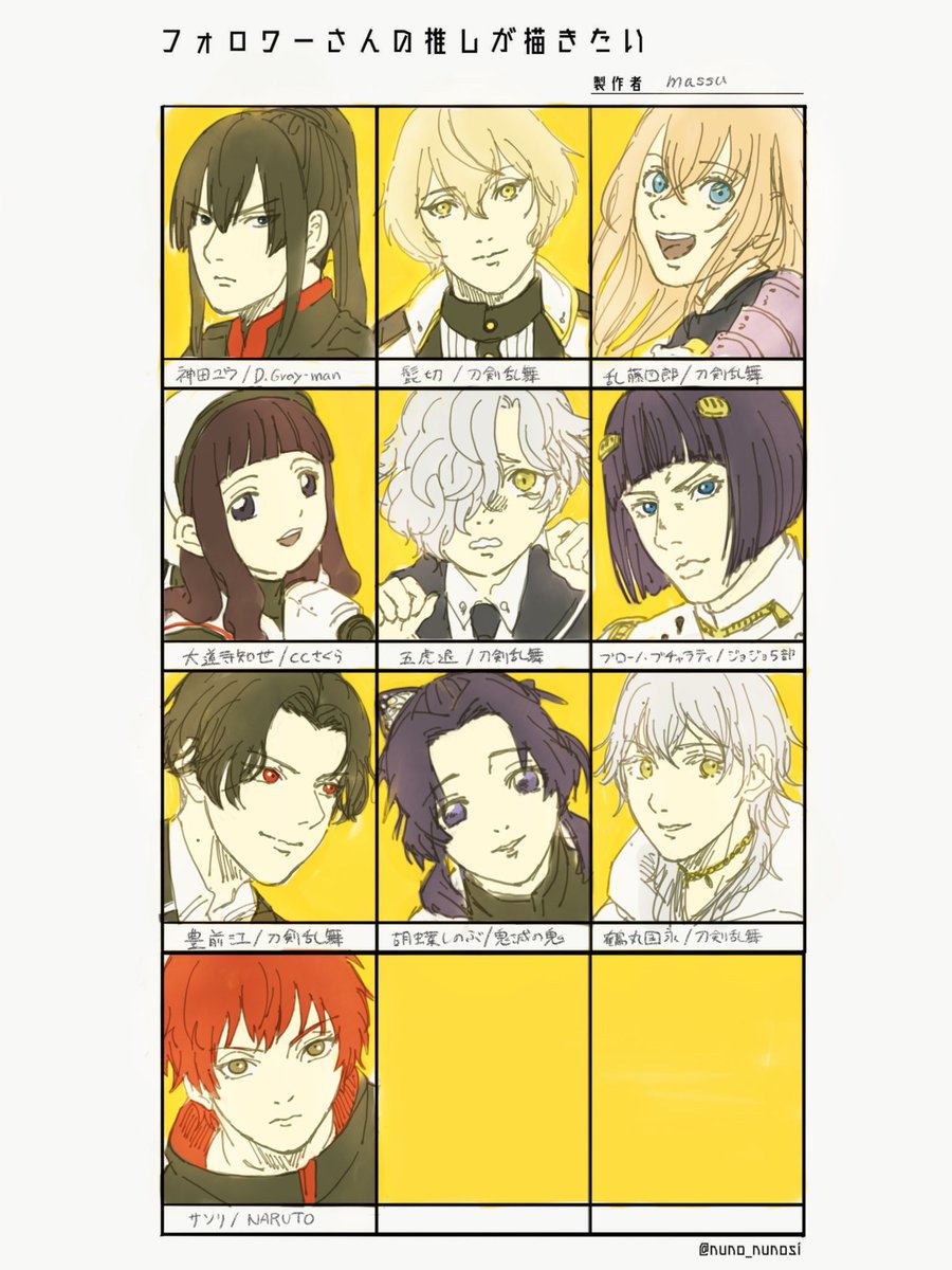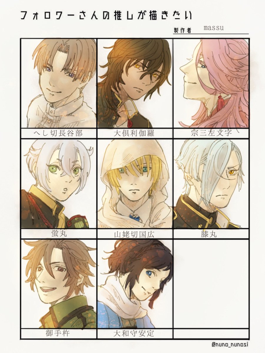 #フォロワーさんの推しが描きたい 大変お待たせいたしました!!!😭🙏 1枚目は刀剣男士、2枚目は色んなジャンルのキャラでまとめております 描いてみたかったキャラも多くてとっても楽しかったです☺️🙏💕