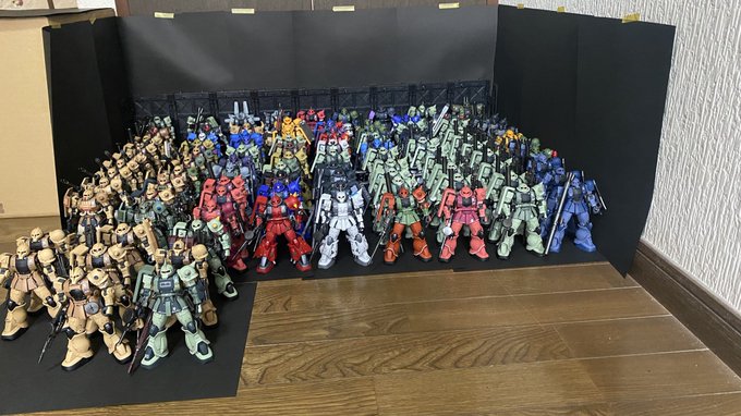 #ザクの日 暖かくなったとは言え、冷えた😵💫 少しはみ出たけと、仕方がない、疲れた😨来年はやめよかな?😵 98体、行方不明3体です。 #ガンプラ #ガンプラ好きと繋がりたい #ガンプラ好きな人と繋がりたい #ガンプラ専門店 #GshopTOKUMAR