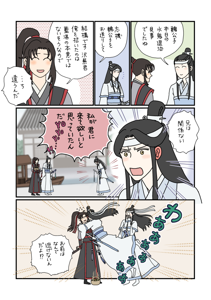 魏無羨 お誕生日おめでとう (お誕生日絵ではないけど 魏嬰が蘇って藍湛が喜んでる?のを代わりに) あと3期もおめでとう