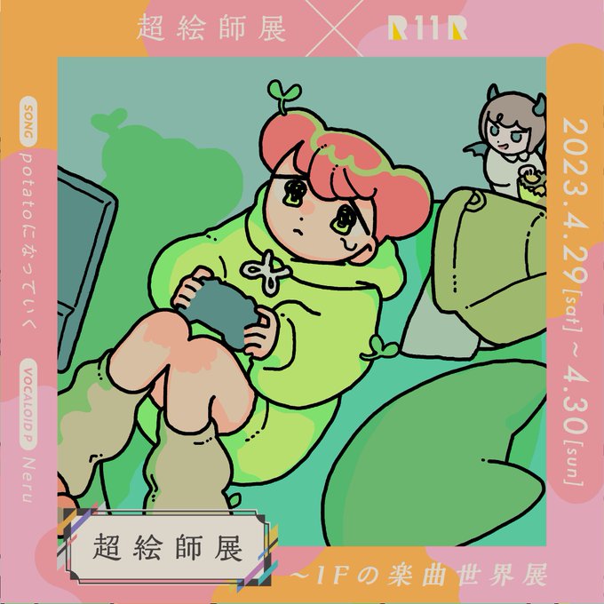 【おしらせ】 4/29~30に開催される、ニコニコ超会議2023 ”超絵師展 〜IFの楽曲世界展〜”に参加します! わたしはNeruさんの「potatoになっていく」を描かせていただきました🥔 サイコー企画なのでぜひ楽しんでね♡ #超会議2023 #超絵師展 chokaigi.jp/2023/plan/eshi…