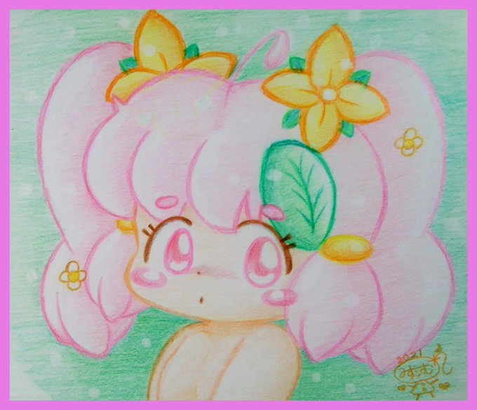 1 4 インスタに載せたやつ。うちの子、くるピンちゃん。 #くるくるピンク #みすこむぷらす #色鉛筆画 21/04/01 13:51