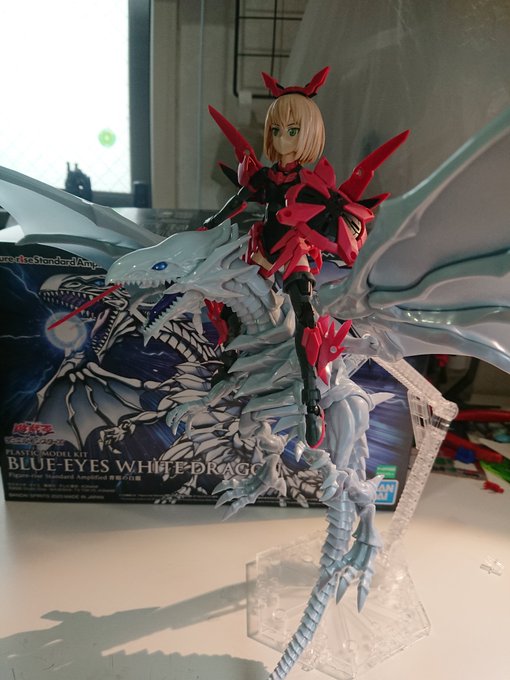 ブルーアイズに乗っかってるティアーシャは前に作ったヤツです。今月は今のところ7体。 #今月作ったプラモ晒そうぜ