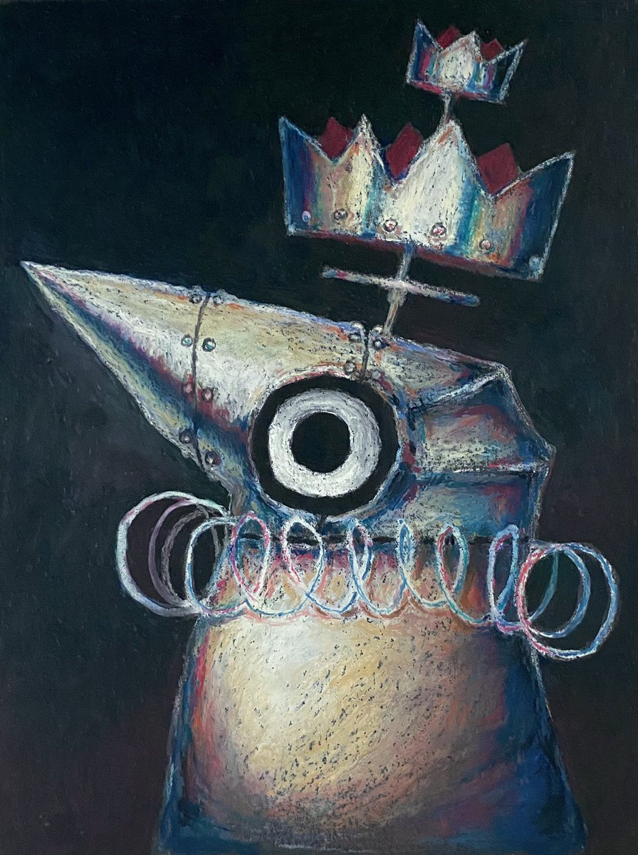 52 312 「ワニの王様」 クレパス、鉛筆 19日からの展示に持っていきます。 23/07/13 18:53