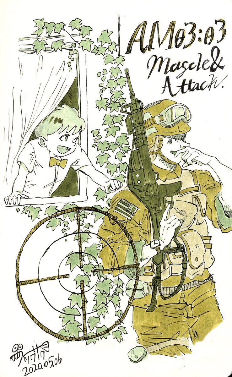 1 6 ワードカードシャッフルでお題イラスト 『AM3:00』『筋肉』『攻撃』 #イラスト #デザイン #アート #コピック #背景画 20/05/07 06:58