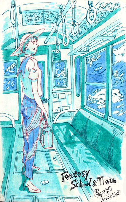 2 10 ワードカードシャッフルでお題イラスト 『ファンタジー』『学校』『電車』 #イラスト #デザイン #アート #コピック #背景画 #海 #学校 #ファンタジー #電車 20/05/10 18:02