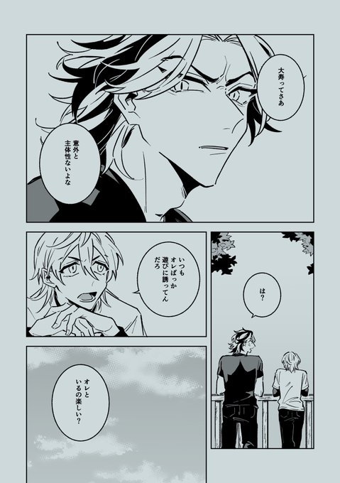41 307 【2/12 TOKYO罹破維武 13】新刊サンプル | 仁田 #pixiv pixiv.net/artworks/10487… たいみつの新刊サンプルです!構われ慣れていない大寿が三ツ谷に構われすぎておかしくなってる漫画です。※サンプルは途中から始まります 23/01/28 23:52