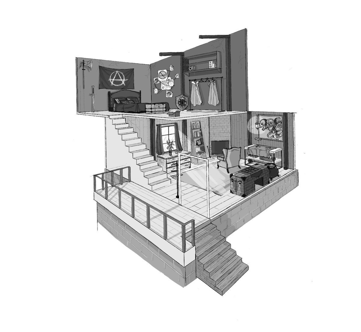 This is probably one of the best things I've drawn and defiantly the best interior perspective drawing I have ever done! I call this "Anarchist Retirement Home" based on @Technothepig house on the dreamsmp. Of course, I took some creative liberties and such. #technofanart