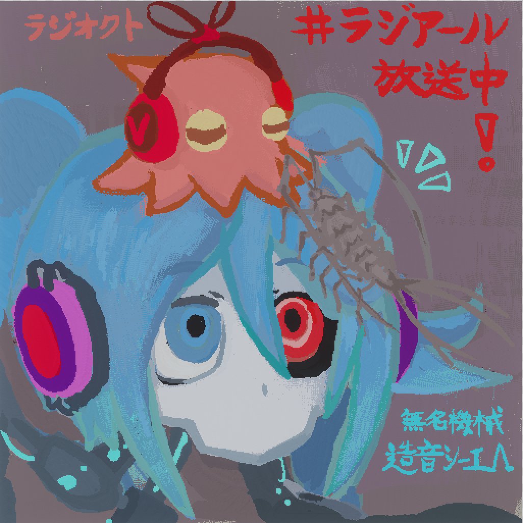 #VRCDrawingRetreat #ヴァリアート #ラジアール 好評放送中!悪役結社広報局ラジアール、メインパーソナリティの造音シーエΛさんとマスコット(?)のラジオクトを描きました!