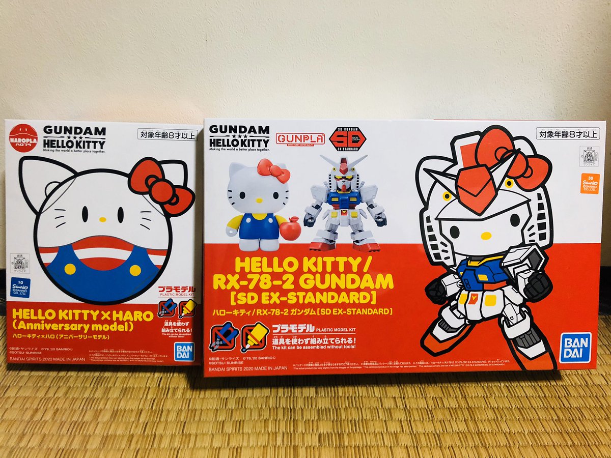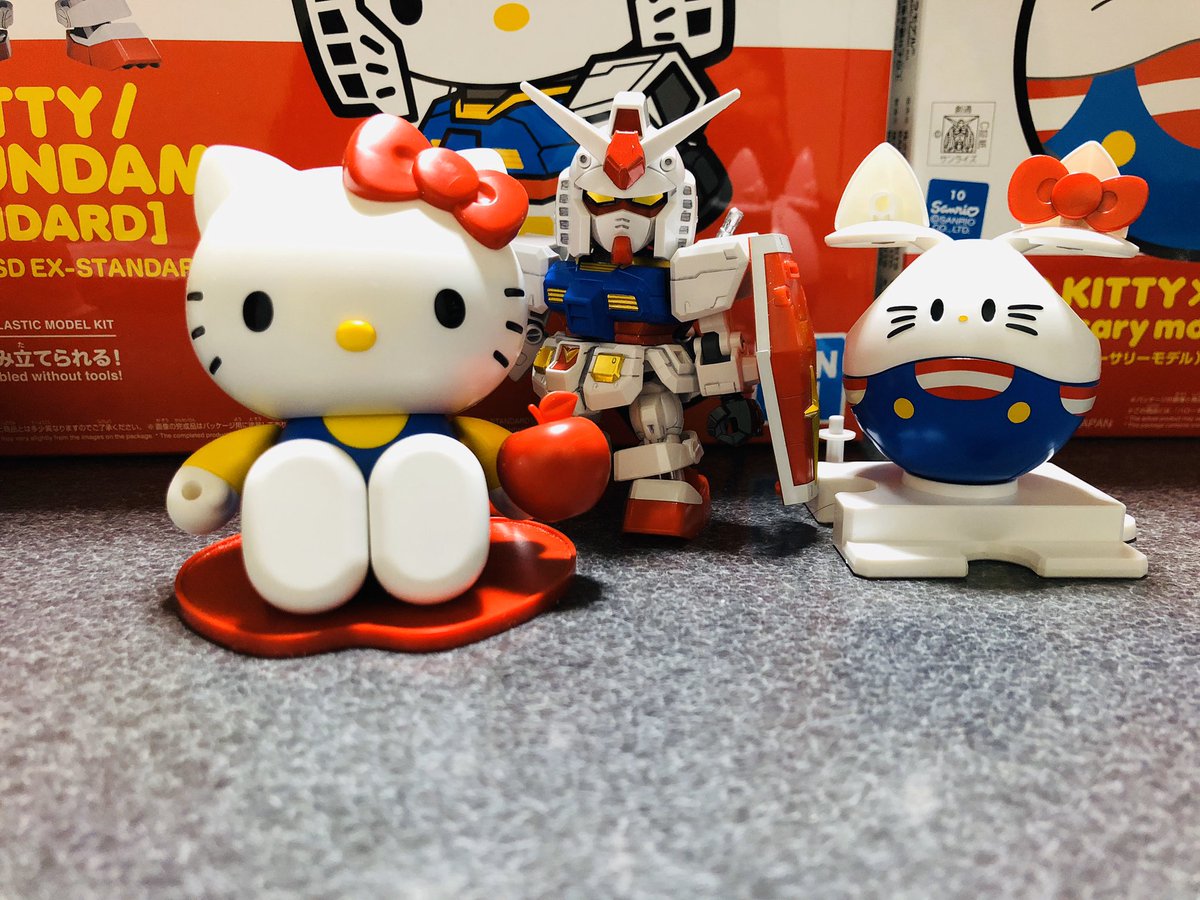 0 4 ガンダムとハローキティのコラボ ガンプラとハロのプラモ ちゃんと座れるしメインのガンダムと合体してハローキティガンダムに。 ランナーもキティちゃんの形になってました。 #ガンダム #ガンプラ #ガンダムハローキティコラボ 20/02/29 23:57