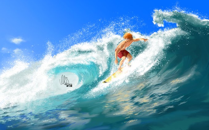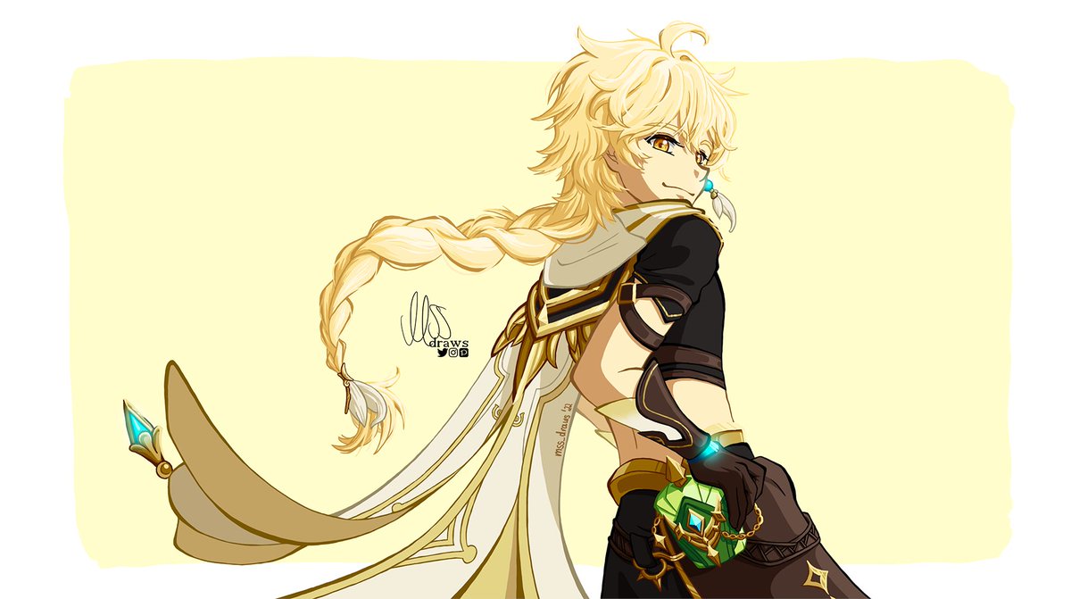 Some #chilumi for y'all with surfer #childe and a very impressed #lumine #GenshinImapct #genshinimpactfanart