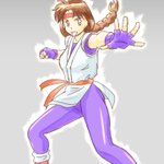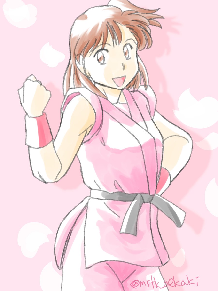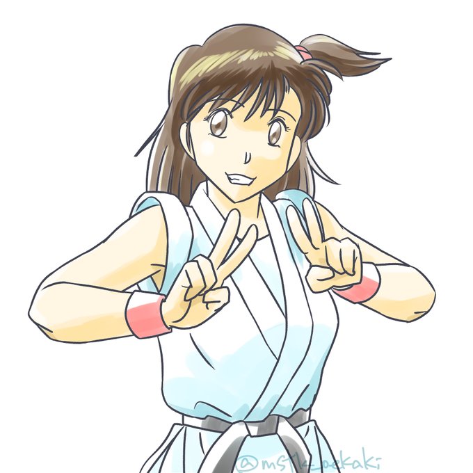 【好きなゲーム絵】 ゲームでは永遠の推しの一人・ワールドヒーローズ2(以降)のリョウコ(出雲良子) 何でも投げちゃうコンパクトボディとか燃えるっしょ ちなみに #ゲームトレジャー4 なのでダブルピースで4を表現してるとか自分で説明しちゃうやつ #ゲートレワンドロ20230605