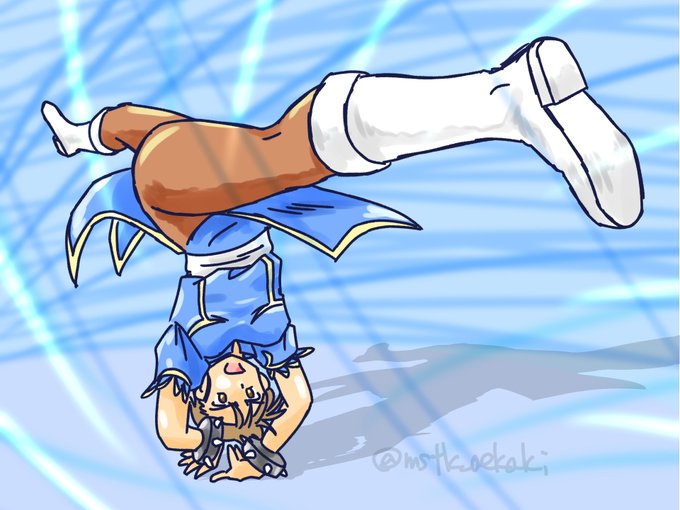 先日の #春麗 のつづきでもう一枚 スピニングバードキック! 自分の脳内ではストIIの最初の映画の時みたく倒立しながら回転して連続蹴りする技のイメージの方がしっくりくるかも #ストリートファイター #格ゲーキャラ描こうぜ