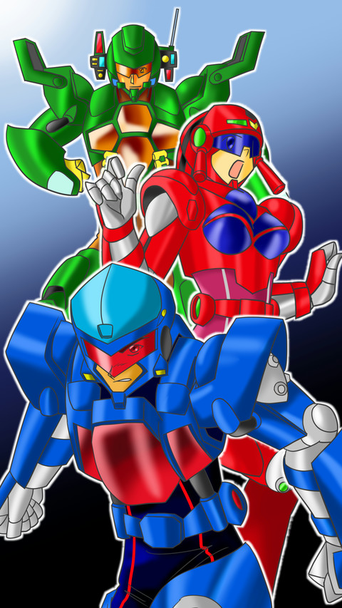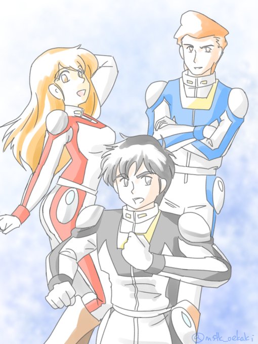 #昭和まんがまつり2023 【光速電神アルベガス】 1983(昭和58)年3月30日~1984(昭和59)年2月8日放映 何か好きだったんですよね、三体合体六変化。やっぱり状況に応じた形態って燃えますね 今回はパイロット3人を描いてみました。ロボは某ワンドロで描いたやつ