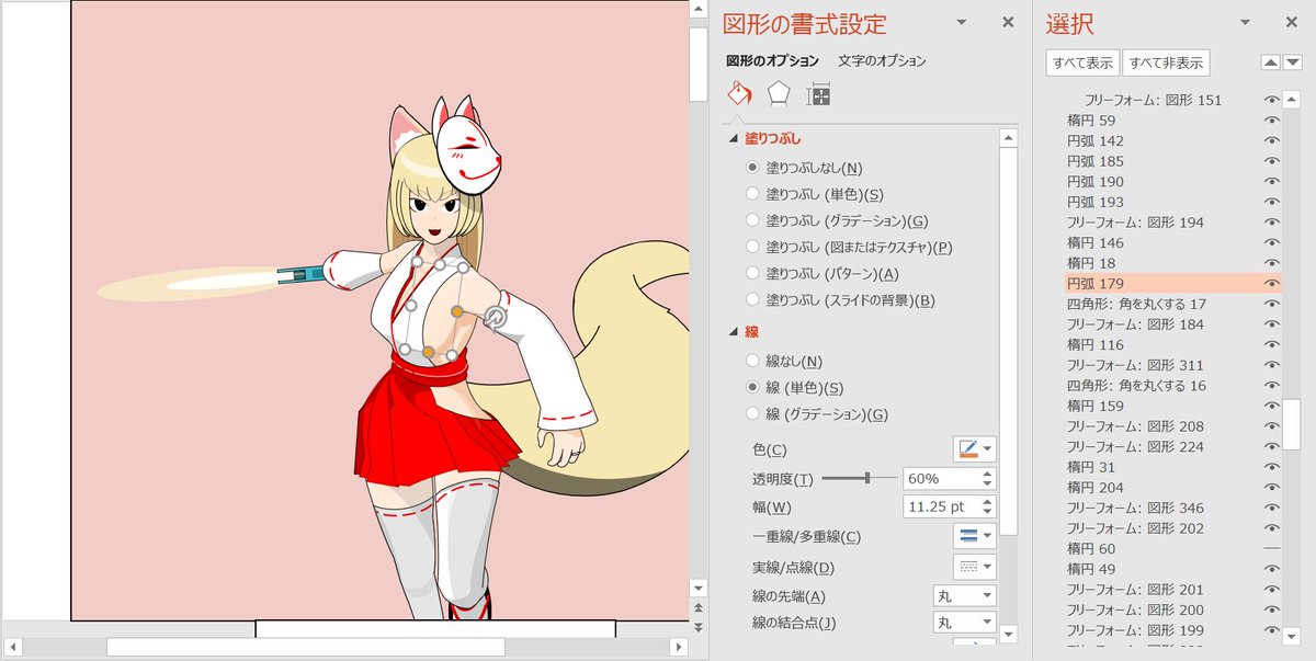 アッシュアームズのM18 ヘルキャットの立ち絵をPowerPointで描いてみました。使用パーツ数は約500個、期間は3ヶ月ぐらいです。 #PowerPoint #PowerPointart #アッシュアームズ #アシュアート