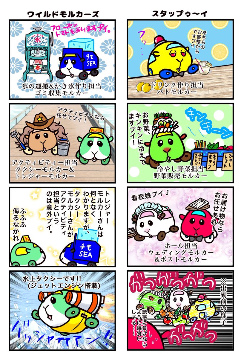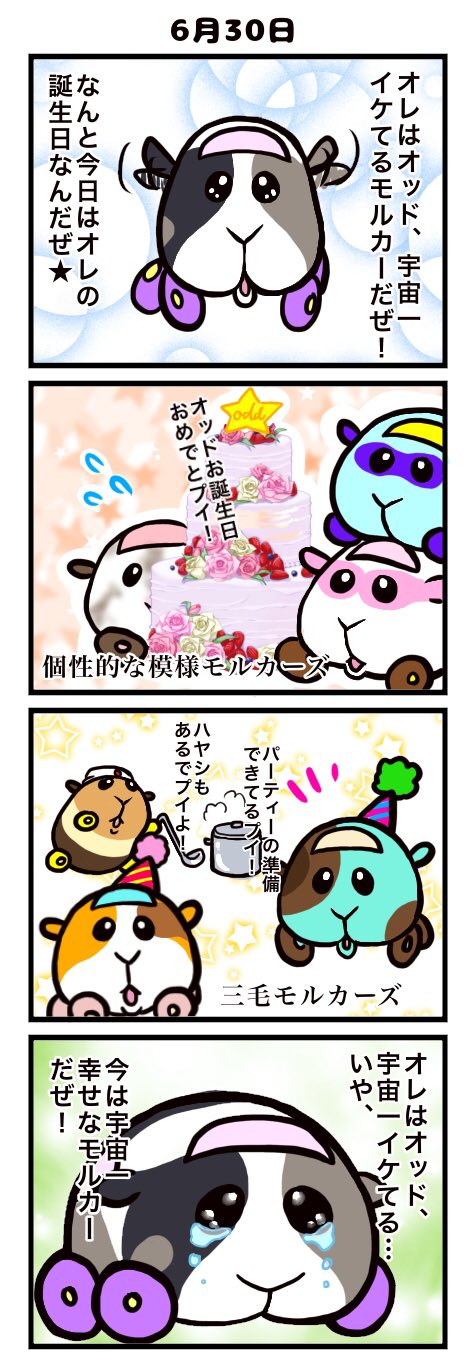 オッド誕生日終わる前に描き終えてたんだけど寝落ちしてました(すまんオッド!)三毛モルもっと居るような気がするけど許してくらはい。 なおチャイのセリフ元ネタは日本印度化計画です🍛 #モルカーファンアート