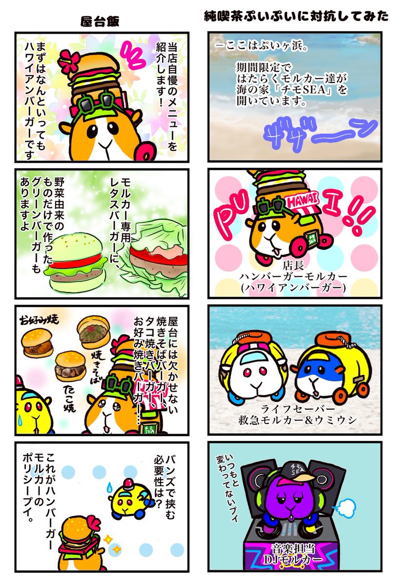 【8月誕生日モルカー漫画②】ハンバーガーモルカー編 出会った時から最推しです(↑↑)b✨✨ 誕生日おめでとうハンバーガーモルカー!誕生日なのに働かせてしまったァァァァ #モルカーファンアート