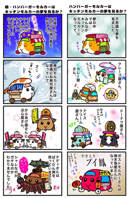 やっと絵を描けるぐらいにはメンタル回復したので、リハビリに最推しモルカーの漫画投下しときます^^; ハンガーとハンバーガーを見間違えることってありますよね←(ねぇよ) #モルカーファンアート