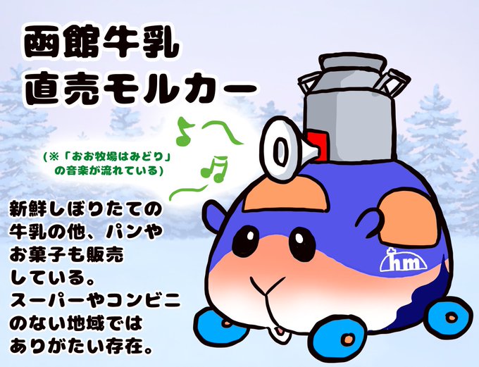 北国に住まうモノなら誰しも知ってるかもしれない「函館牛乳の直売カー」をモルカー化してみたw 昔よくフエラムネ買ってもらってた記憶が… (地元で今でもたまに見かける) #モルカーファンアート