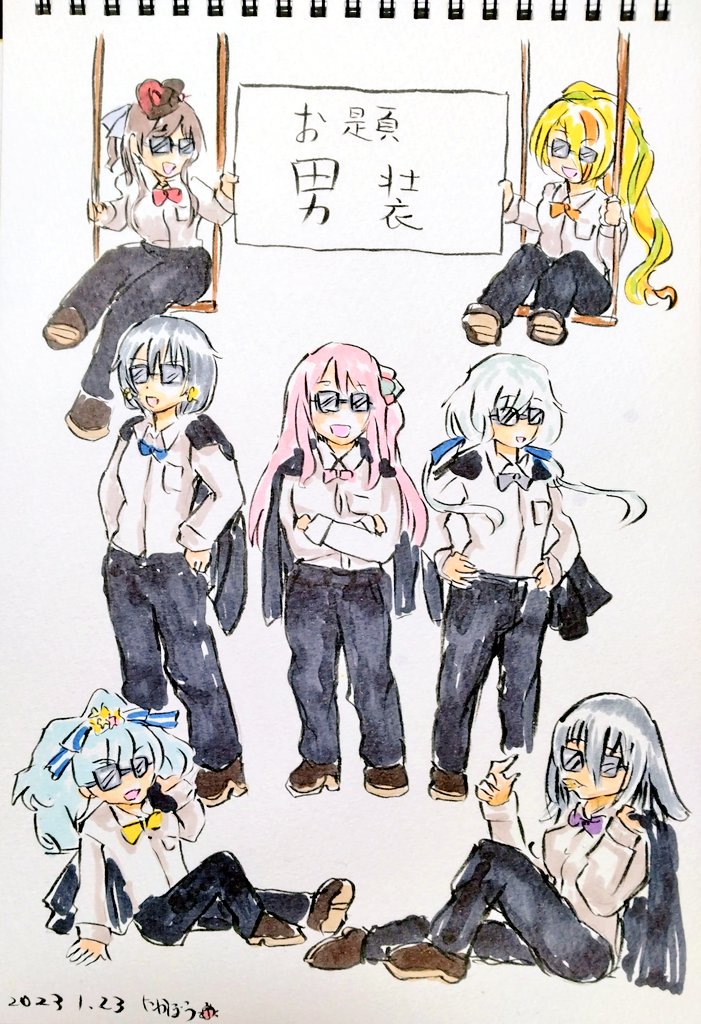 43 111 #ゾンサガ版深夜の真剣お絵かき60分一本勝負 お題:男装(10分オーバー) とある男の真似を…と思ったんですが思いの外タモ🕶みたくなっちゃっいました(もしくは内Pっぽくもある) 23/01/23 00:28