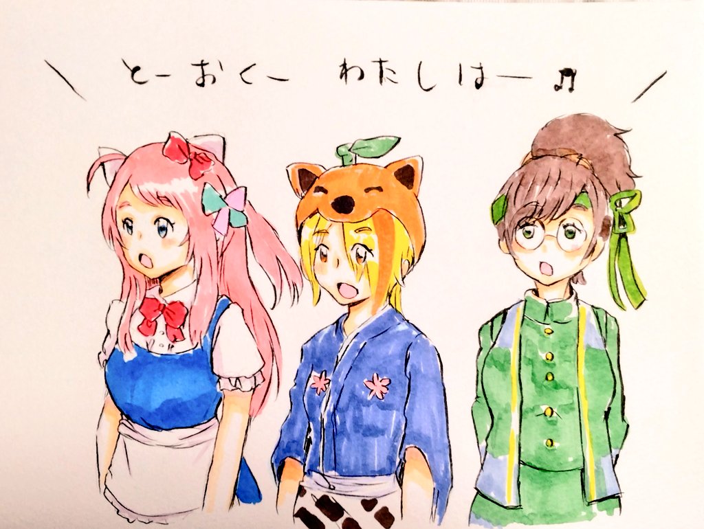 5 19 #ゾンサガ版深夜の真剣お絵かき60分一本勝負 お題:ケモ耳&卒業 「私達はケモ耳から卒業します!」と謎の宣言を残し光へ…を歌う1、2、7号 23/03/26 23:08