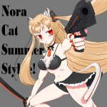 暑いので水着のらちゃんを描いてたら夜になった #のらきゃっと #Nora_Cat